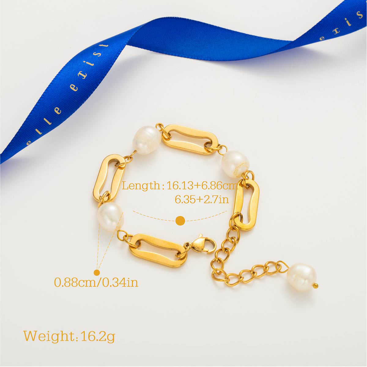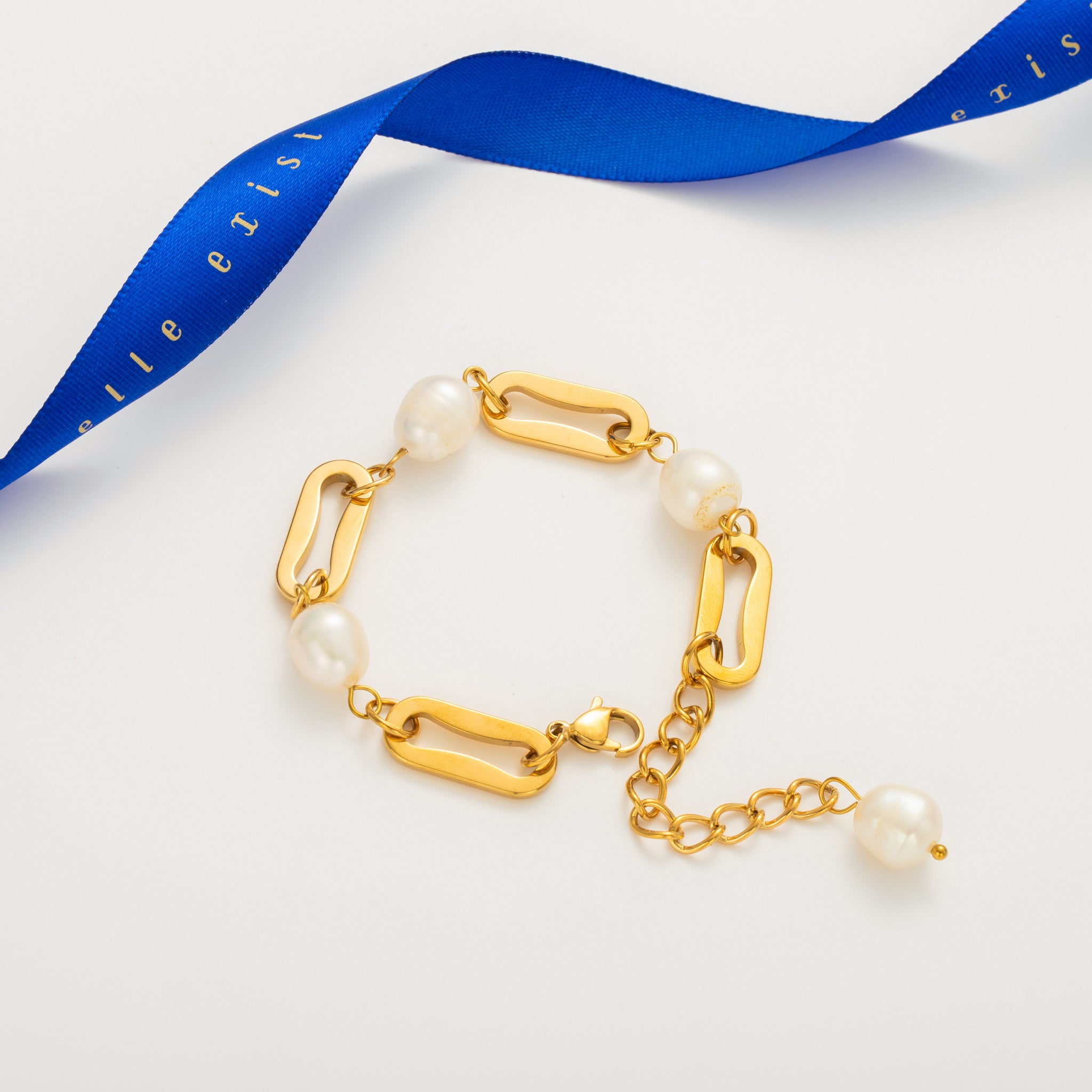 A contemporary bracelet featuring bold geometric links paired with smooth luminous beads. Its balanced design blends modern edge with timeless elegance, making it a versatile piece that elevates any style.