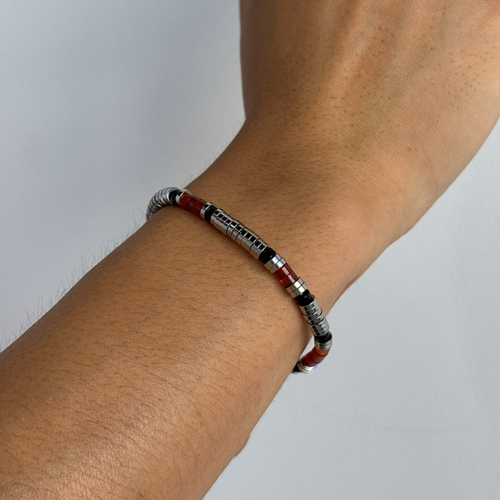 The Fiery Dawn Bracelet captures the essence of a stunning sunrise with its warm shades of red, orange, and metallic accents. This striking piece effortlessly blends elegance and boldness, making it a standout jewelry . Designed for versatility, it can be worn alone or layered with other bracelets for a more dynamic look. The adjustable closure provides comfort, ensuring it fits perfectly on any wrist.