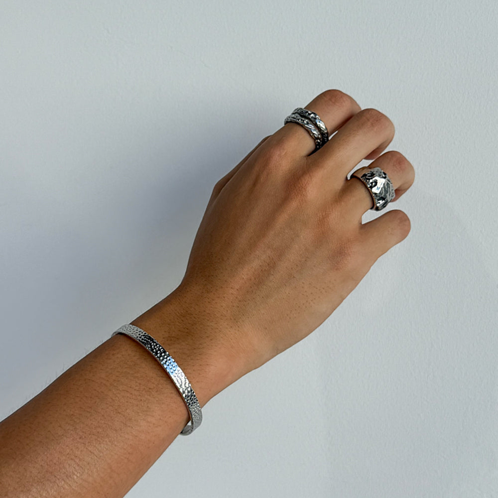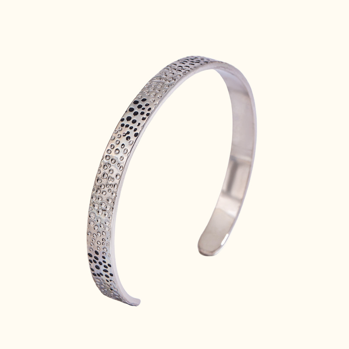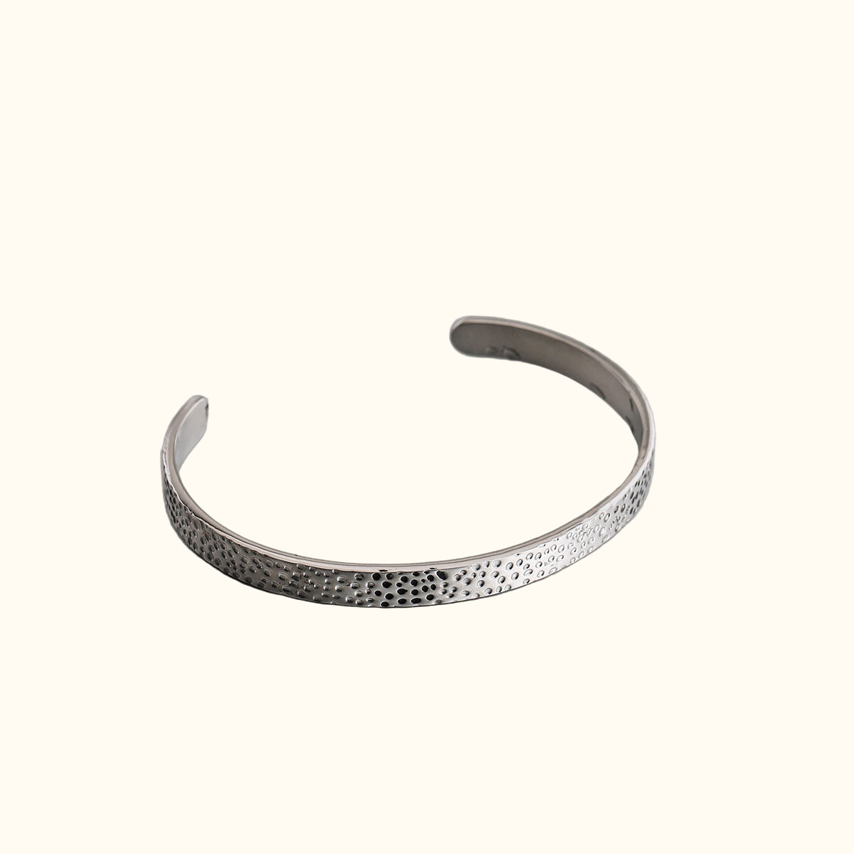 The Silken Dune Cuff captures the essence of elegance with its smooth, undulating texture reminiscent of gentle sand dunes. Its open cuff style allows for easy wear and a customizable fit, making it perfect for any wrist size. Ideal for both everyday wear and special occasions, the Silken Dune Cuff is a stunning piece that enhances your style with refined simplicity.