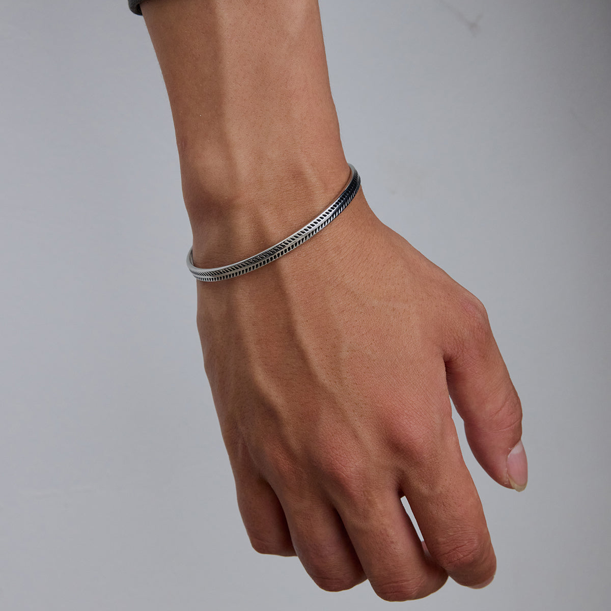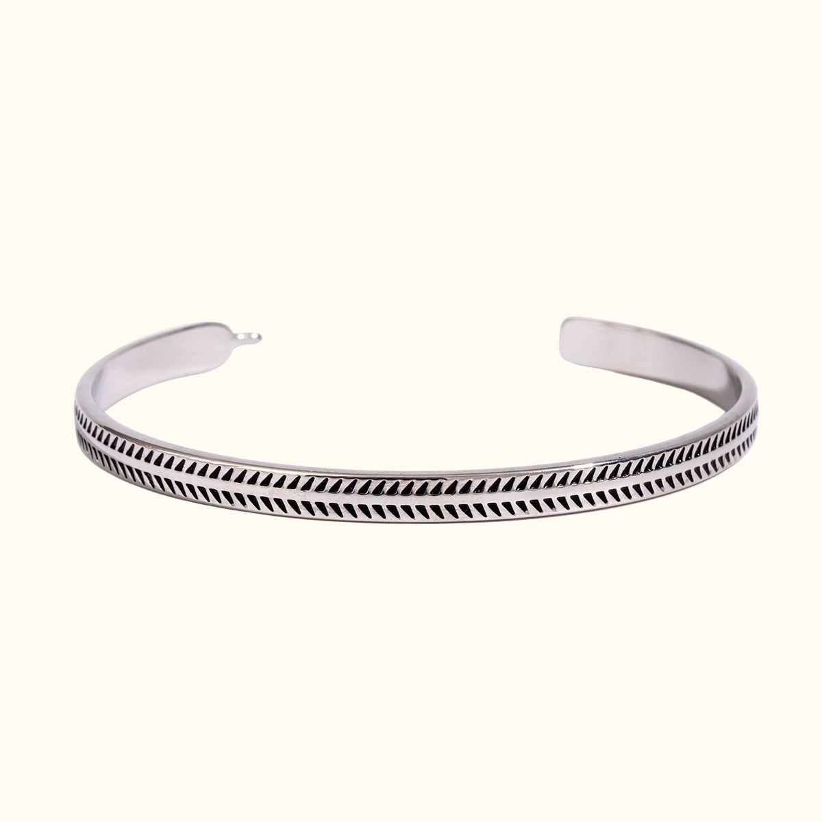 The Elegant Chevron Cuff features a sleek and minimalist design, characterized by intricate chevron detailing. This open cuff style allows for easy adjustability, ensuring a comfortable fit for any wrist size. Its modern aesthetic makes it a versatile piece, perfect for layering with other bracelets or wearing solo for a chic statement. Ideal for both casual and formal occasions, this bracelet adds a touch of sophistication to any outfit.
