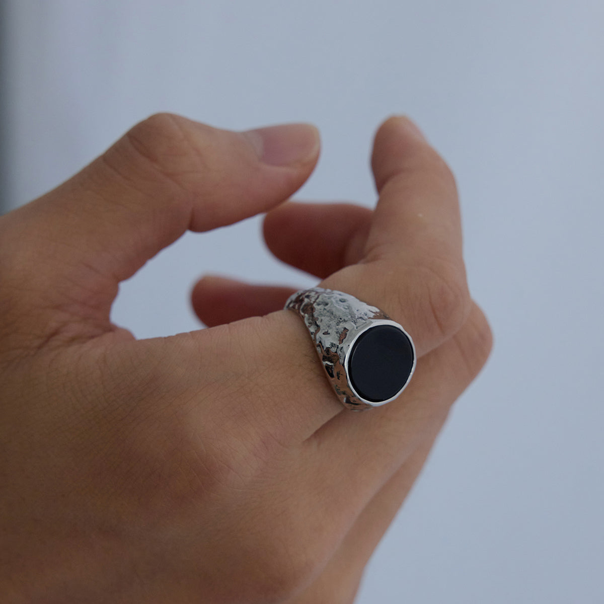 The Obsidian Majesty Ring features a striking centerpiece that commands attention, elegantly framed by a sleek and sophisticated band. This design exudes an air of regal charm and understated luxury, making it the perfect addition for the modern gentleman. With its timeless appeal and bold presence, this ring is ideal for both formal occasions and everyday wear, embodying strength and elegance in every detail.