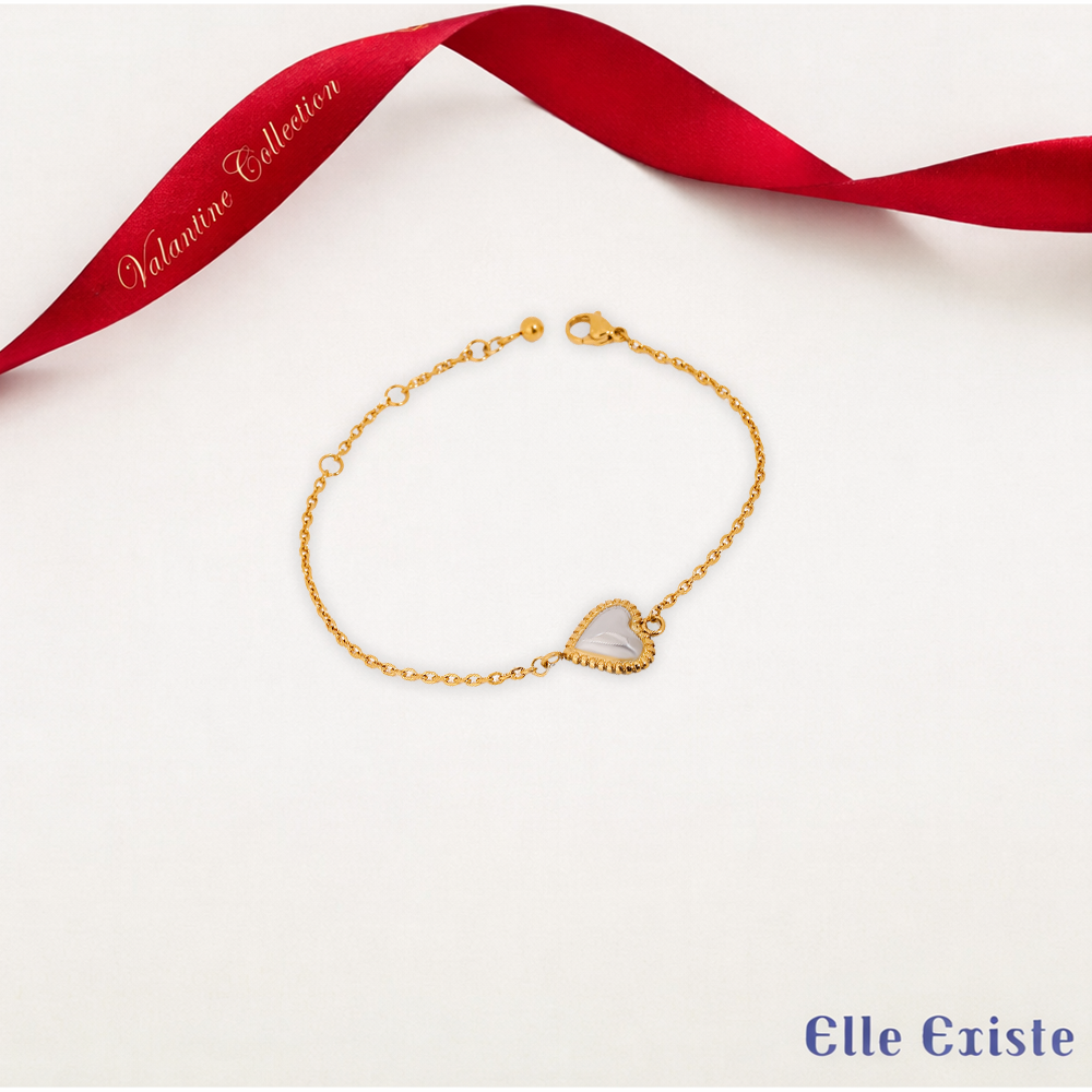 The Heartline bracelet showcases a delicate gold-tone chain that beautifully complements a stunning heart-shaped charm at its center. The charm features a smooth, iridescent surface framed by a textured border, adding a touch of elegance and sophistication. With its adjustable clasp, the bracelet ensures a perfect fit for any wrist. This piece symbolizes the connection between love and beauty, making it a perfect gift for loved ones or a cherished addition to your own jewelry collection.