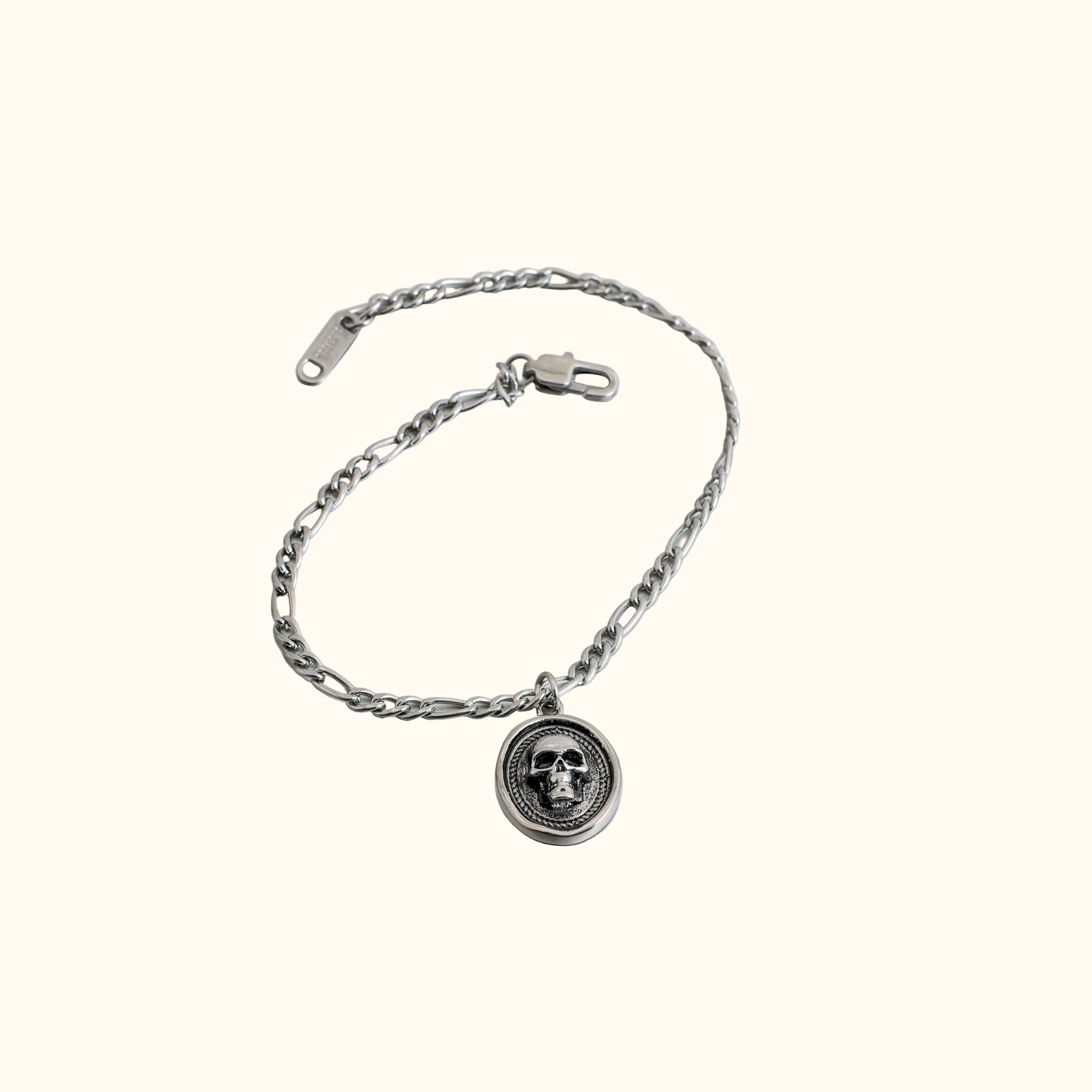 The Rebel Spirit Bracelet embodies a bold and edgy aesthetic, perfect for those who embrace their individuality. Featuring a rugged chain design, this bracelet is accentuated by a striking charm that showcases a detailed skull motif, symbolizing strength and defiance. The contrasting textures of the chain and charm create an eye-catching visual appeal, making it a standout piece for any outfit. With an adjustable clasp for a comfortable fit.