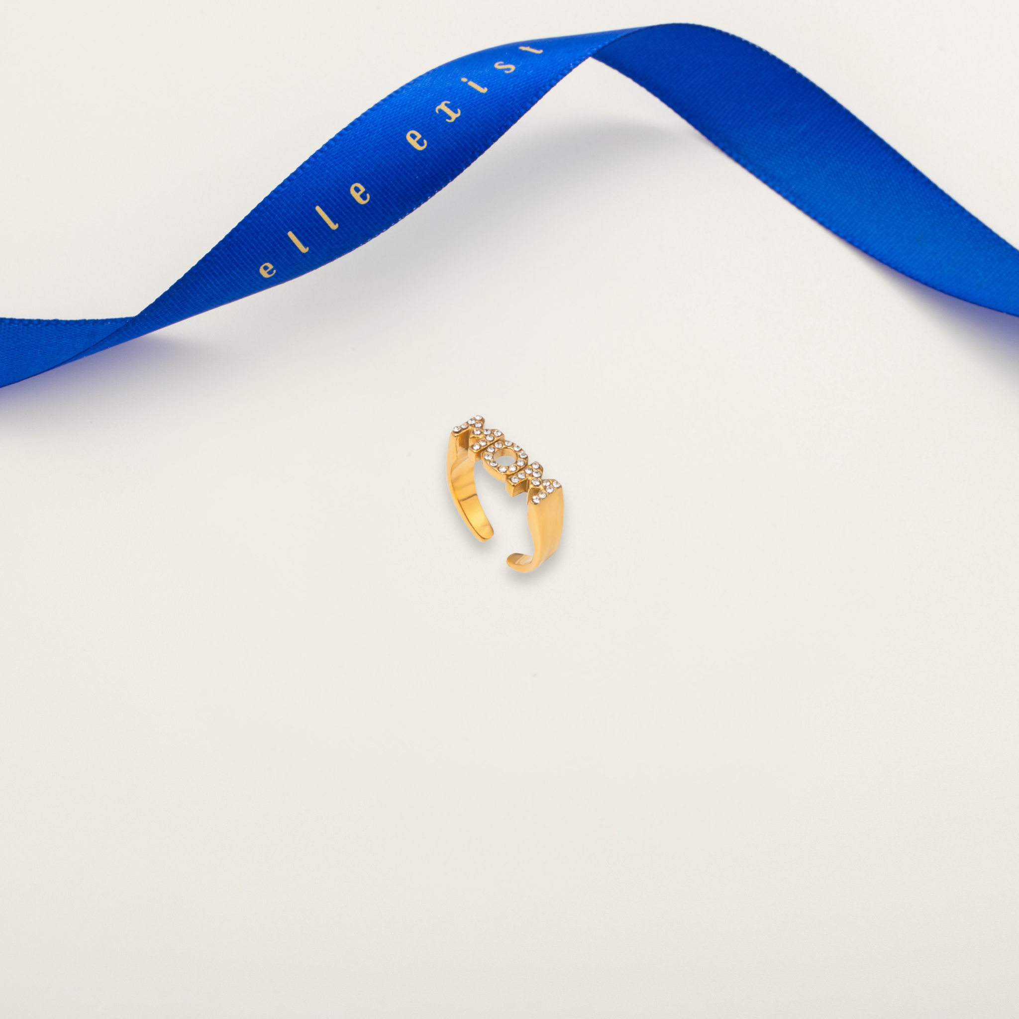 A refined gold ring centered around the word “MOM,” accented with subtle brilliance.