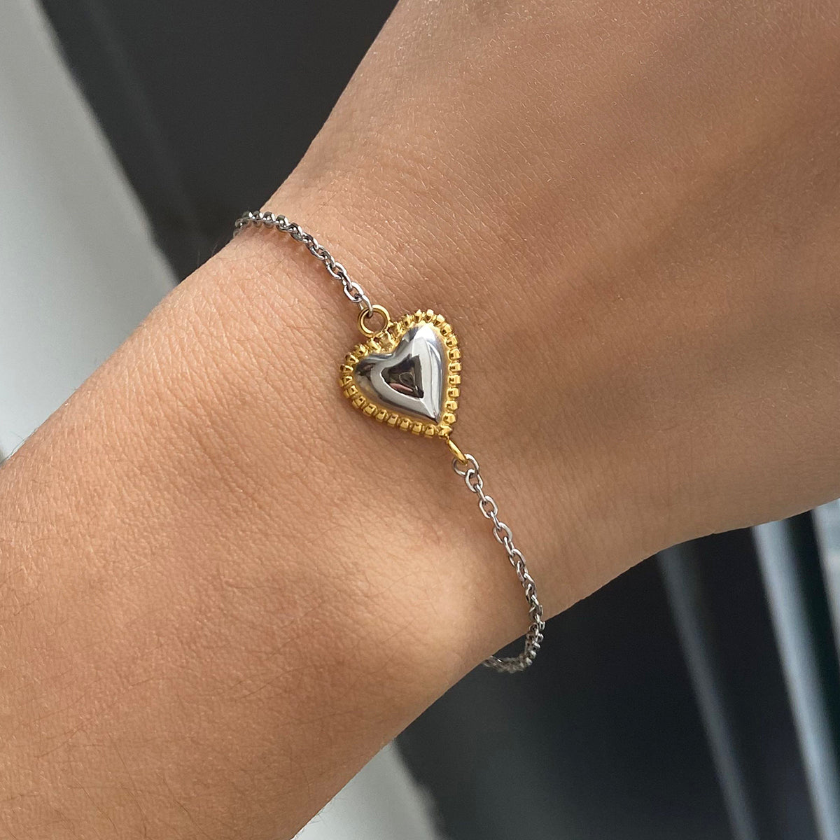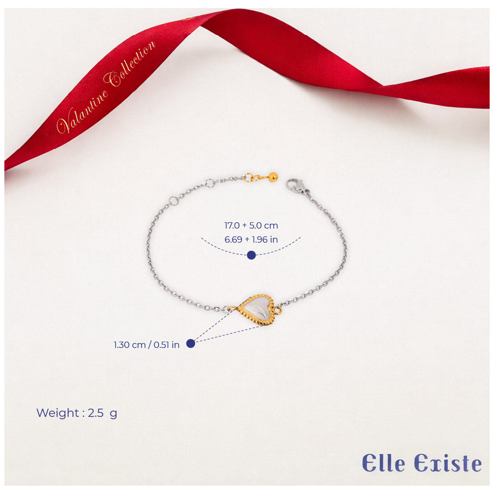 The Love Loop bracelet features a charming heart pendant at its center, elegantly framed by a delicate chain. The heart's unique shape adds a playful touch, while the overall design embodies the essence of love and connection. The adjustable clasp ensures a comfortable fit, making it suitable for any occasion. This bracelet serves as a beautiful reminder of cherished relationships and heartfelt moments, perfect for gifting or as a personal keepsake.