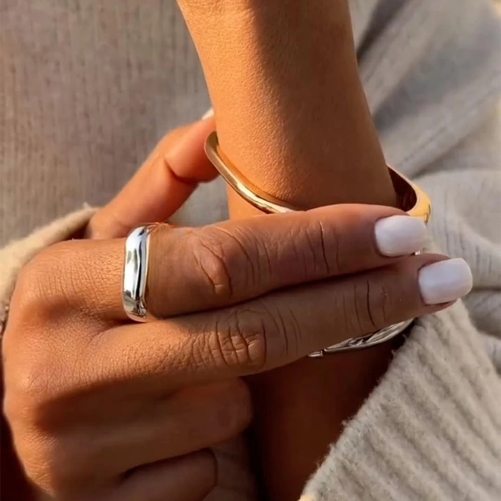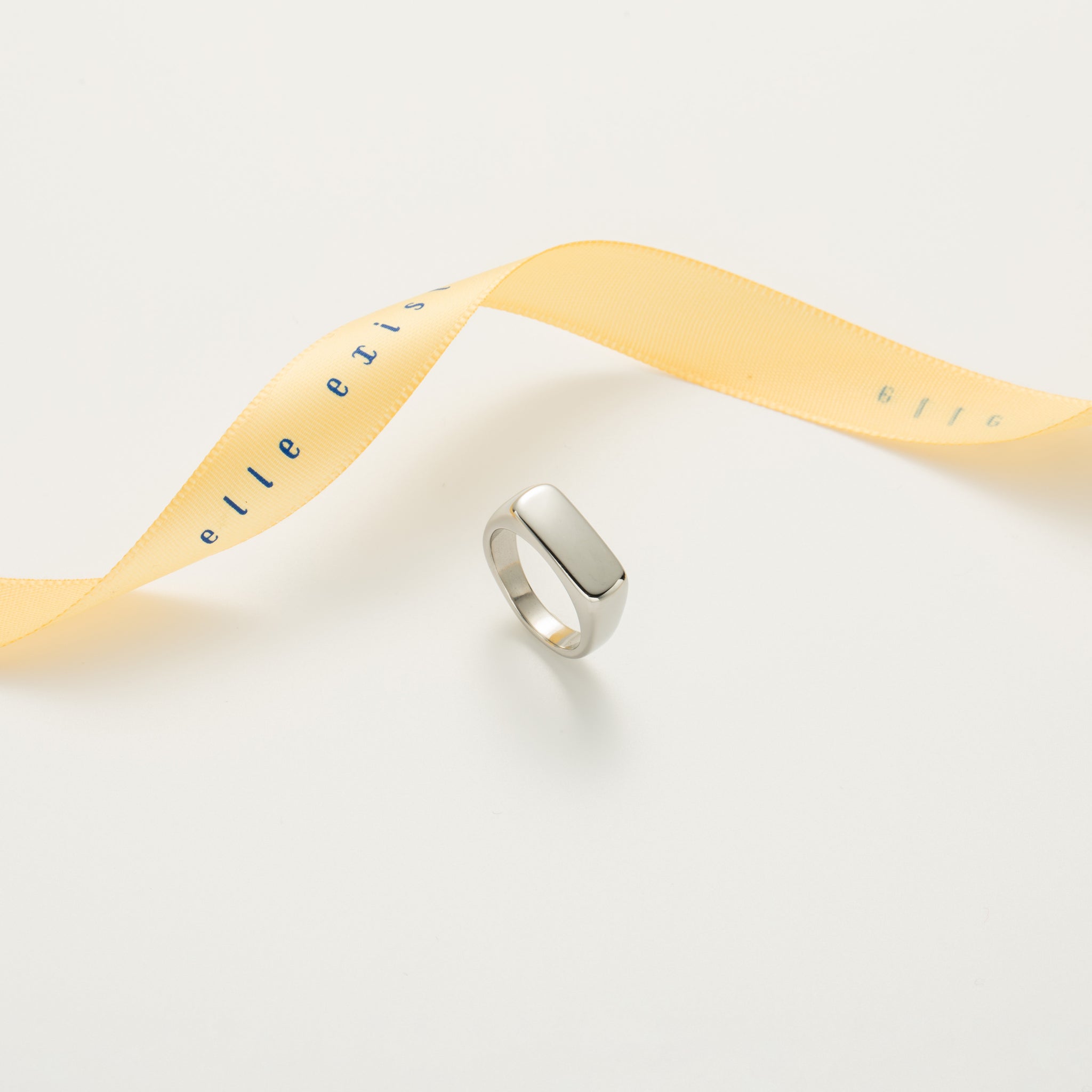 This sleek and contemporary ring boasts a minimalist design with a broad, flat top that creates a bold statement. Crafted from a highly polished, cool-toned metal, its smooth, lustrous surface reflects light beautifully. The clean lines and substantial feel exude modern sophistication, making it an ideal accessory for those who appreciate understated elegance and architectural simplicity.